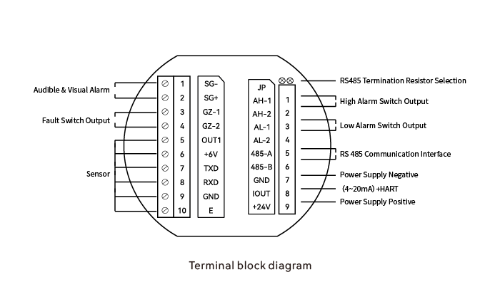 | Output Signal | 4~20mA (three-wire) 4~20mA+HART (optional) RS485 Modbus (four-wire) Three groups relay switch output (2A 30V DC) 24V DC output (drive audible and visual alarm) 4G/5G/NB-IoT/LORA wireless communication transmission (optional) |