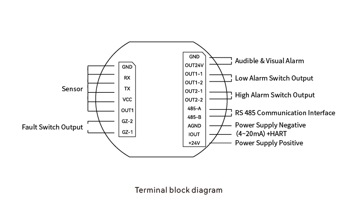 | Output Signal | 4~20mA (three-wire) 4~20mA+HART (optional) RS485 Modbus (four-wire) Three groups relay switch output (2A 30V DC) 24V DC output (drive audible and visual alarm) 4G/5G/NB-IoT/LORA wireless communication transmission (optional) |