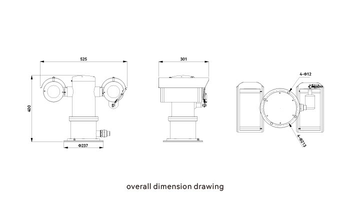 – High integration: adopts integrated structural design, integrating gas detector, HD camera, and full-range variable-speed pan-tilt unit in one, with no external connecting cables between pan-tilt unit, detector, and camera
